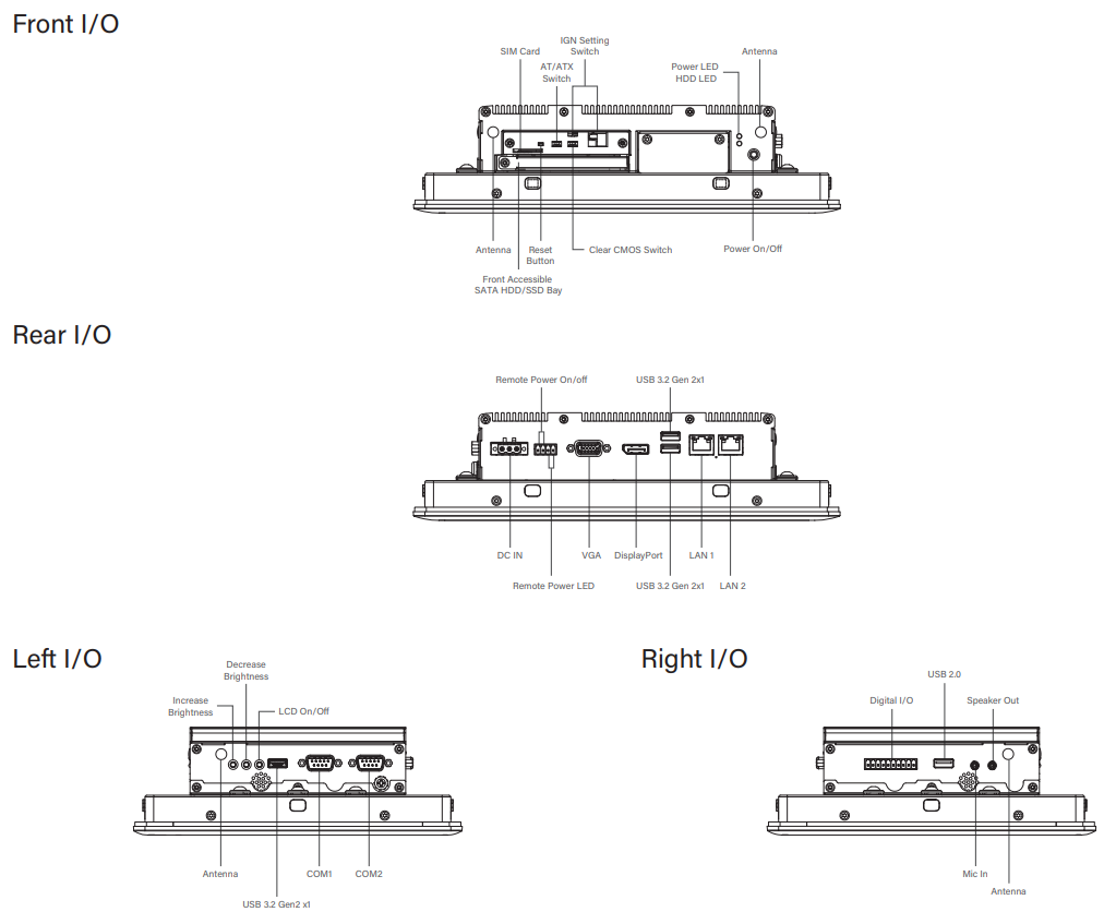 - 1x VGA, 1x DP, 2x 2.5GbE LAN, 3x COM, 4x USB, 1x DIO (4in/4out)