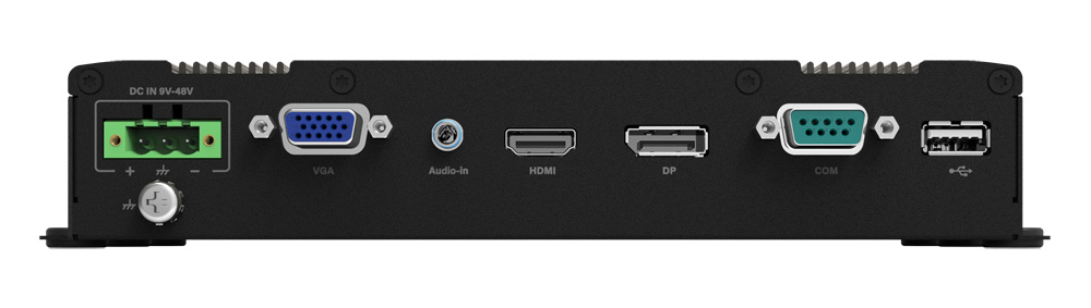 - 1x VGA, 1x HDMI, 1x DP, 1x USB, 1x COM